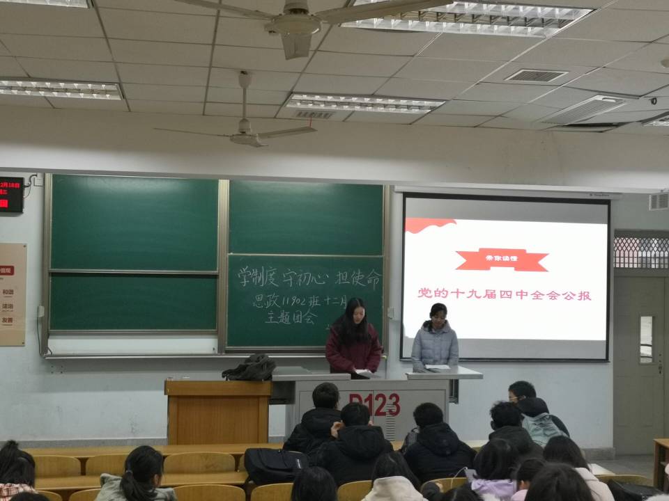 12月,结合学校“学制度,守初心,担责任”主题教育安排,hjc黄金城官方网站认真组织开展了十九届四中全会精神学习团会。