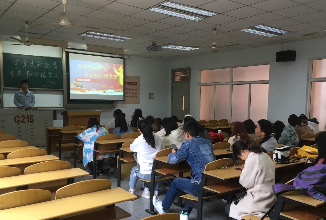 根据学校“不忘初心、牢记使命”主题教育实践活动安排,hjc黄金城官方网站认真组织开展11月“学党史知国情,不忘初心跟党走”主题团日活动全体支部积极响应,全体学生踊跃学习。