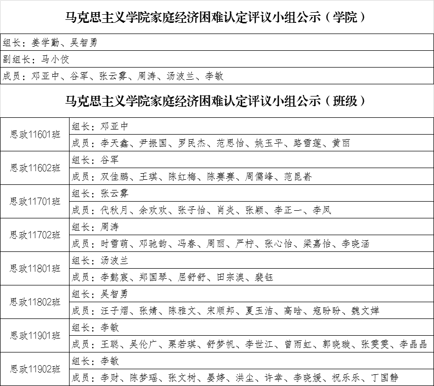 【信息公示】hjc黄金城官方网站家庭经济困难认定评议小组名单