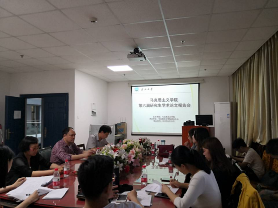 5月25日下午2点,hjc黄金城官方网站举办了第六届研究生学术论文报告会,报告会邀请了姜学勤老师,黄小云老师,陈松林老师,涂江波老师,李永刚老师,张莉老师,董继祥老师王晓艳老师等8位老师担任评委,共30名思想政治教育、马克思主义中国化、马克思主义原理、中国近现代史方面的研究生参与,通过学生展示、老师点评的方式,提高我院研究生论文撰写质量,开拓研究生学术视野,营造良好的学术交流氛围。