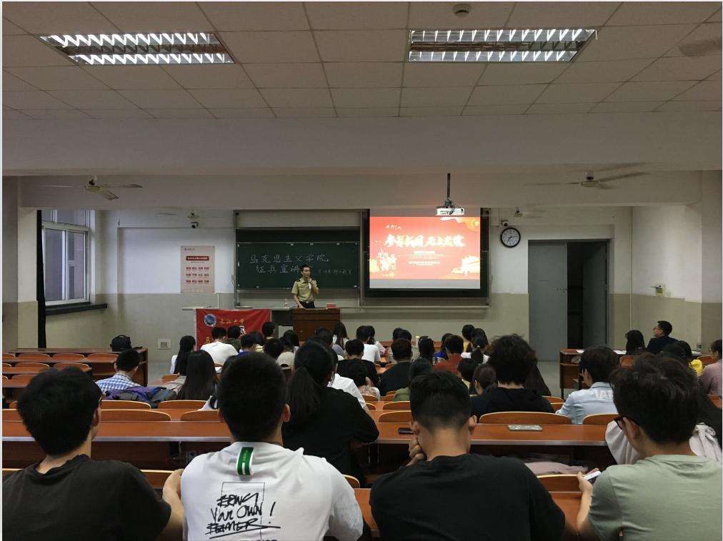 韩王戴贤从国防的意义、入伍“三笔账”、大学生参军优惠政策、入伍条件和流程等方面对大学生应征入伍进行了全面解读。谈到参军入伍,韩王戴贤结合自身经历讲述了参军所带来的精神上的充实、心智上的成熟和能力上的提升。“当兵一阵子,受益一辈子”,他动员同学们携笔从戎,踊跃参军。