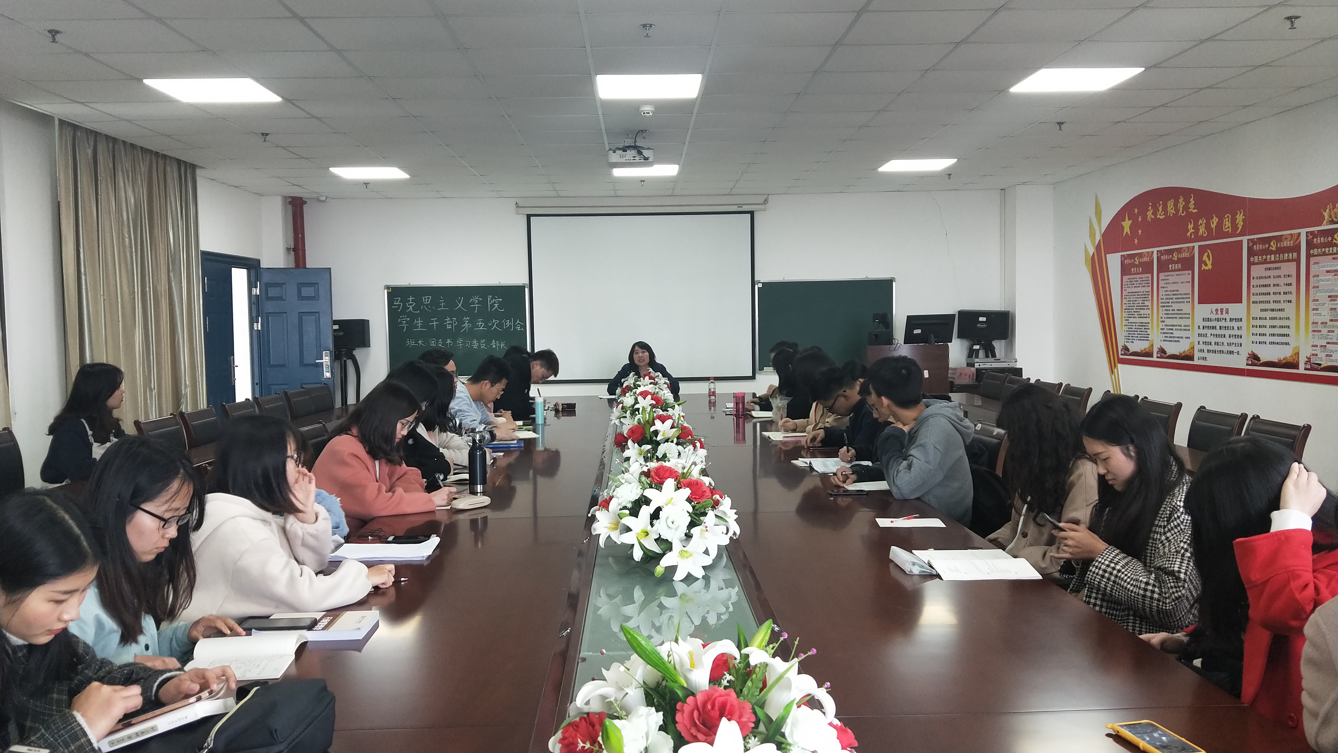 (通讯员:张也) 3月25日下午四点,hjc黄金城官方网站辅导员张云雾老师在文科大楼1104室主持召开了第五次学生干部例会暨学风建设动员大会,出席本次会议的人员有hjc黄金城官方网站兼职辅导员饶静老师,全院班级的班长、团支书和学习委员,以及hjc黄金城官方网站学生会主席团和各部门部长。张云雾老师就近期出现的问题做了强调并进行了工作安排。