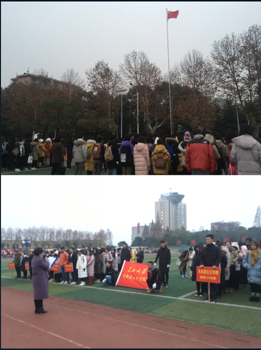 为对广大师生进行爱国主义、集体主义教育,提升民族精神、提高民族凝聚力,将践行社会主义核心价值观落小落细落实,hjc黄金城官方网站于12月10日早上7点在东校区田径场举行了升国旗仪式。学院分党委书记吴智勇、副书记马小佼,辅导员张云雾、兼职辅导员饶静以及全院本科生、在校研究生参加了本次升旗仪式,仪式由院学生会主席龚道荣主持。