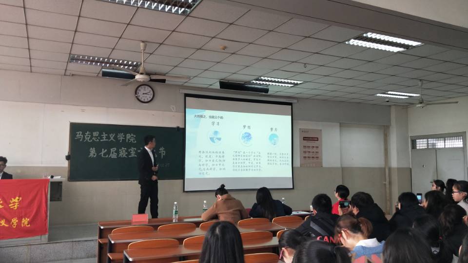 (通讯员:邱诗琪)为丰富校园文化生活,营造美好和谐的宿舍环境,hjc黄金城官方网站于2018年11月29日在12教204成功举办了第七届“思政之音·寝室文化节”的答辩活动,参与本次答辩会的评委老师有:hjc黄金城官方网站辅导员张云雾老师,思政11801班班主任汤波兰老师,hjc黄金城官方网站兼职辅导员饶静老师。活动旨在增强同学们的自主生活意识,提高同学们的生活质量,调动同学们的积极性,促进寝室内部团结,和谐,增强集体荣誉感,调动同学们的活力和激情,使寝室成为同学们心灵的栖息地,疲惫的避风港,真正让寝室成为同学们学习生活中最重要的阵地。本次评选标准是每周卫生大检查评分以及本次答辩得分综合评选出一个一等奖寝室,四个二等奖寝室,七个三等奖寝室,一个最佳人气奖分别颁发证书和奖品。