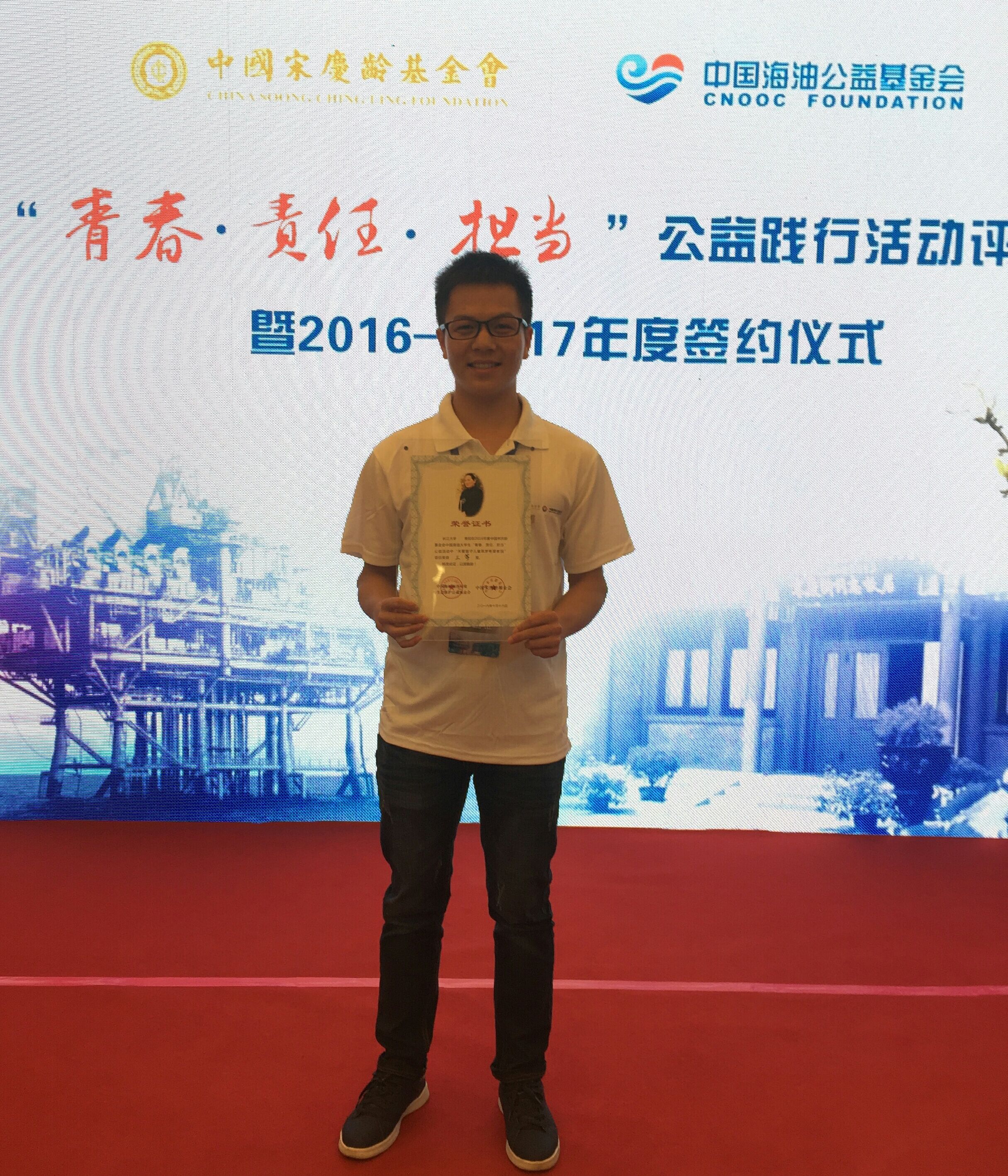 在校期间,他认真学习,顺利通过英语四、六级考试,绩点达到3.0以上。学干经历丰富,曾担任班级副班长、院学生会科技部副部长、《郢都论坛》社副社长、社联宣传部部长,长江大学社团联合会产给副主席等职务。先后参加学生干部初级培训班、社团干部培训班,并被评选为优秀学员。曾经参与组织了第十一届社团文化艺术节开幕式,策划了长江大学第十二届、第十三届社团文化艺术节、长江大学2016年“百团招新”等一系列相关社团活动。大学四年,多次参加各类社团活动,曾获长江大学想唱就唱周赛二等奖、年度总决赛二等奖;团属校级组织无领导小组讨论二等奖;宋庆龄基金会与中国海洋石油基金会主办的“青春 责任 担当”公益实践评选大赛三等奖;先后两次获得“优秀共青团员”称号,两次获得“优秀共青团干”称号,两次获得“优秀学生干部”称号;多次获得“活动积极分子”称号;长江大学第十一届“万人创百星”评选活动,荣获“学干之星”称号。先后参加2016年校迎新晚会演出、校友节文艺汇演。现已被保研为长江大学研究生。