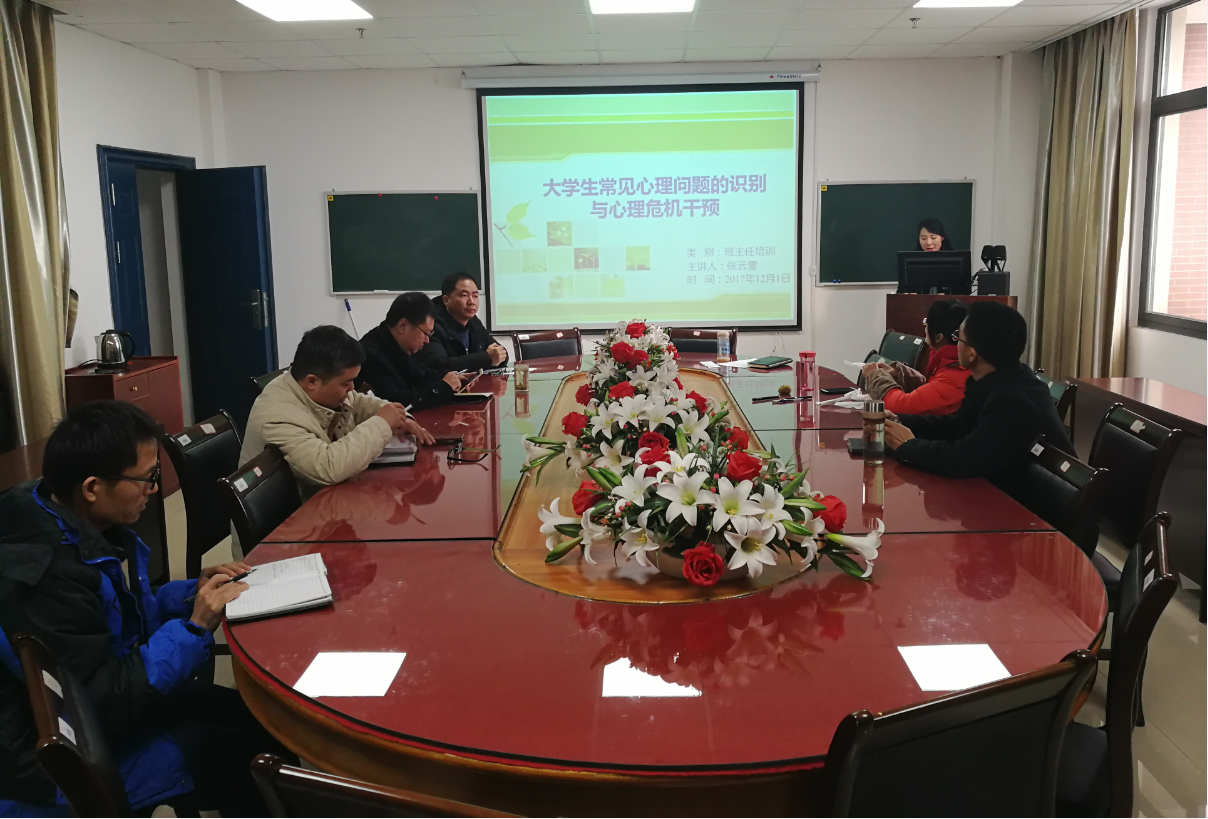 心理健康是学生安全稳定工作的重要组成部分。秋冬季节也是季节性抑郁多发时期,为有效识别学生常见的心理问题、预防危机,hjc黄金城官方网站于12月1日开展了本年度第二次班主任工作培训,由心理专干张云雾老师为班主任们讲解大学生常见的心理问题及危机干预。