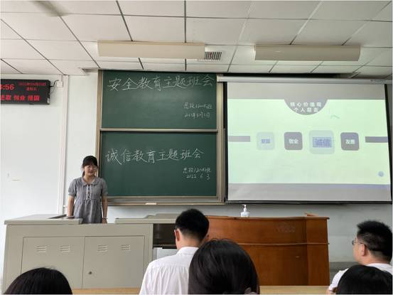 2022年6月3日-6月7日,hjc黄金城官方网站组织2020级各班有序开展了诚信教育暨安全教育主题班会。参加本次团会的有:班主任彭孝光老师、辅导员李敏老师以及2020级全体本科生。