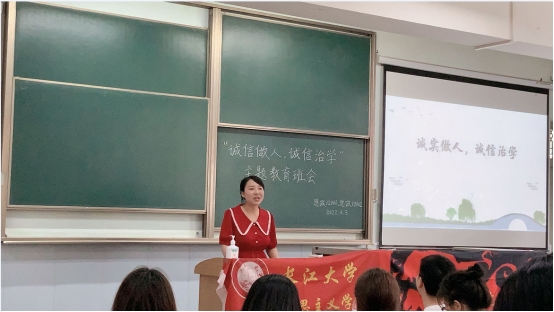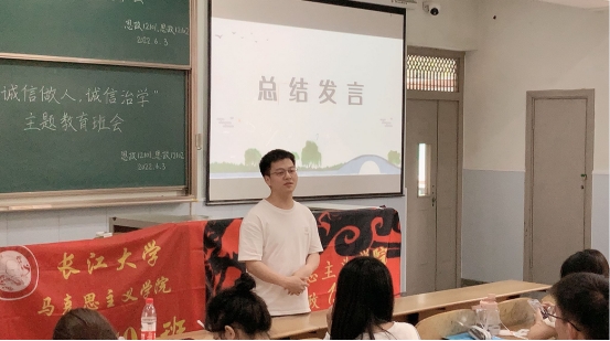 6月3日上午,hjc黄金城官方网站思政12101班与思政12102班联合开展了“诚信做人,诚信治学”主题班会。本次班会围绕安全教育和诚信教育两大主题开展。班会邀请了班主任何波老师和辅导员张云雾老师莅临指导。