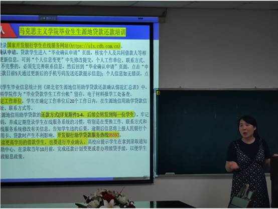 会上,张云雾老师系统梳理了与毕业生相关的36项工作,重点提示了生源地贷款还款确认和学生就业工作。今年我院共有15名毕业生办理过生源地贷款。张老师细致讲解了毕业确认及还款操作流程,提醒毕业生应诚信还款、诚信做人。