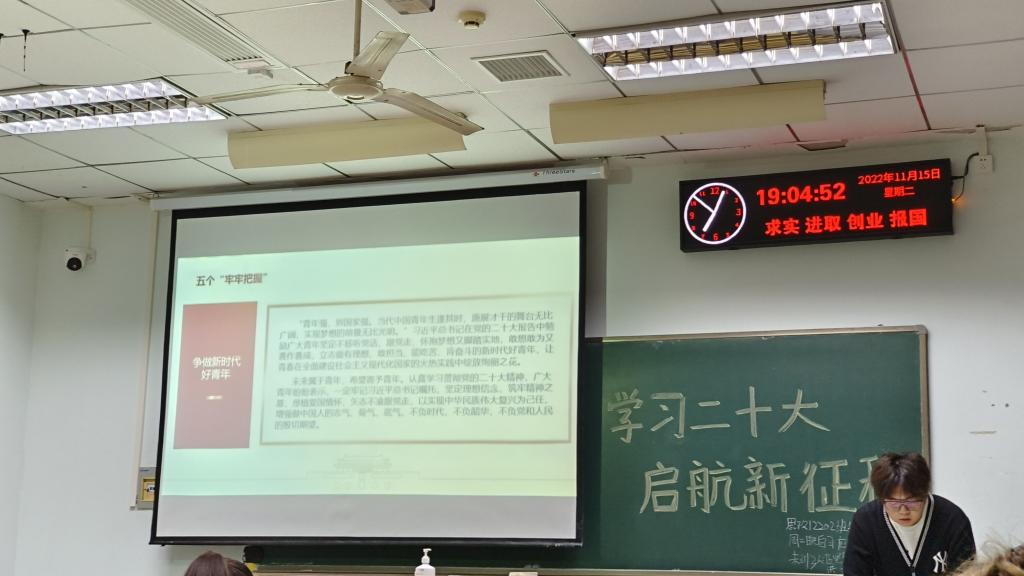 吾辈青年皆风华正茂,愿伴祖国走过通往现代化强国的漫漫长路,以敢于入世的心胆,见诸行动,用电光火石般的生命照亮祖国崛起的远方。在本次“学习二十大,启航新征程”主题团日活动中,hjc黄金城官方网站各支部带领同学们深刻领会党的二十大精神,引领同学们牢记习近平总书记的嘱托,在新时代怀抱梦想又脚踏实地,敢想敢为又善作善成。