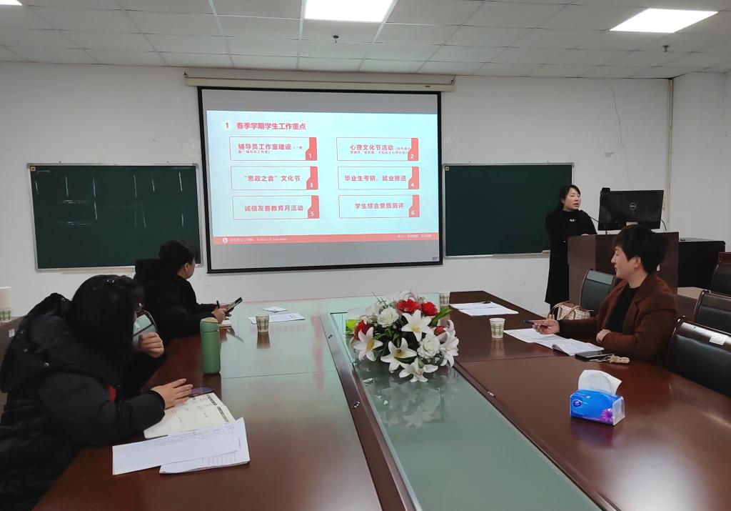 2月12日下午,hjc黄金城官方网站在文科楼1104室召开新学期班主任工作会,部署开学初及本学期重点工作。