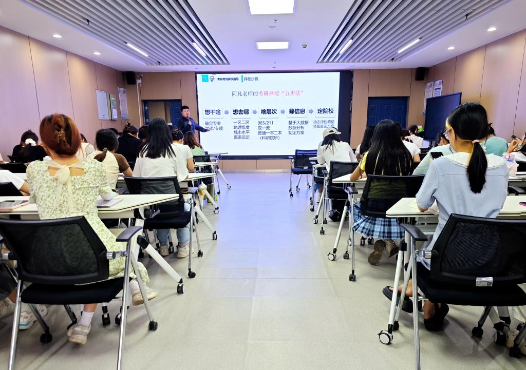 “合理的报考院校专业选择,是努力的结果放大器。”“方法用对,才能研路生花。”“知道怎么考,比考什么更重要。”讲座中,张老师从当下考研备考面临的挑战引入,结合考研动机和当前就业形势及国家政策分析,对考研择校择专业的基本策略作了全面介绍;根据同学们的具体学情,他为大家量身定制暑期全科复习方法,深入剖析考研成功的核心要素,勉励同学们合理选择、科学备考、足够努力、坚持到底,持续修炼扬在脸上的自信、长在心底的善良、融进骨血的骄傲、刻进生命的坚强,不负“研”途,静待花开。