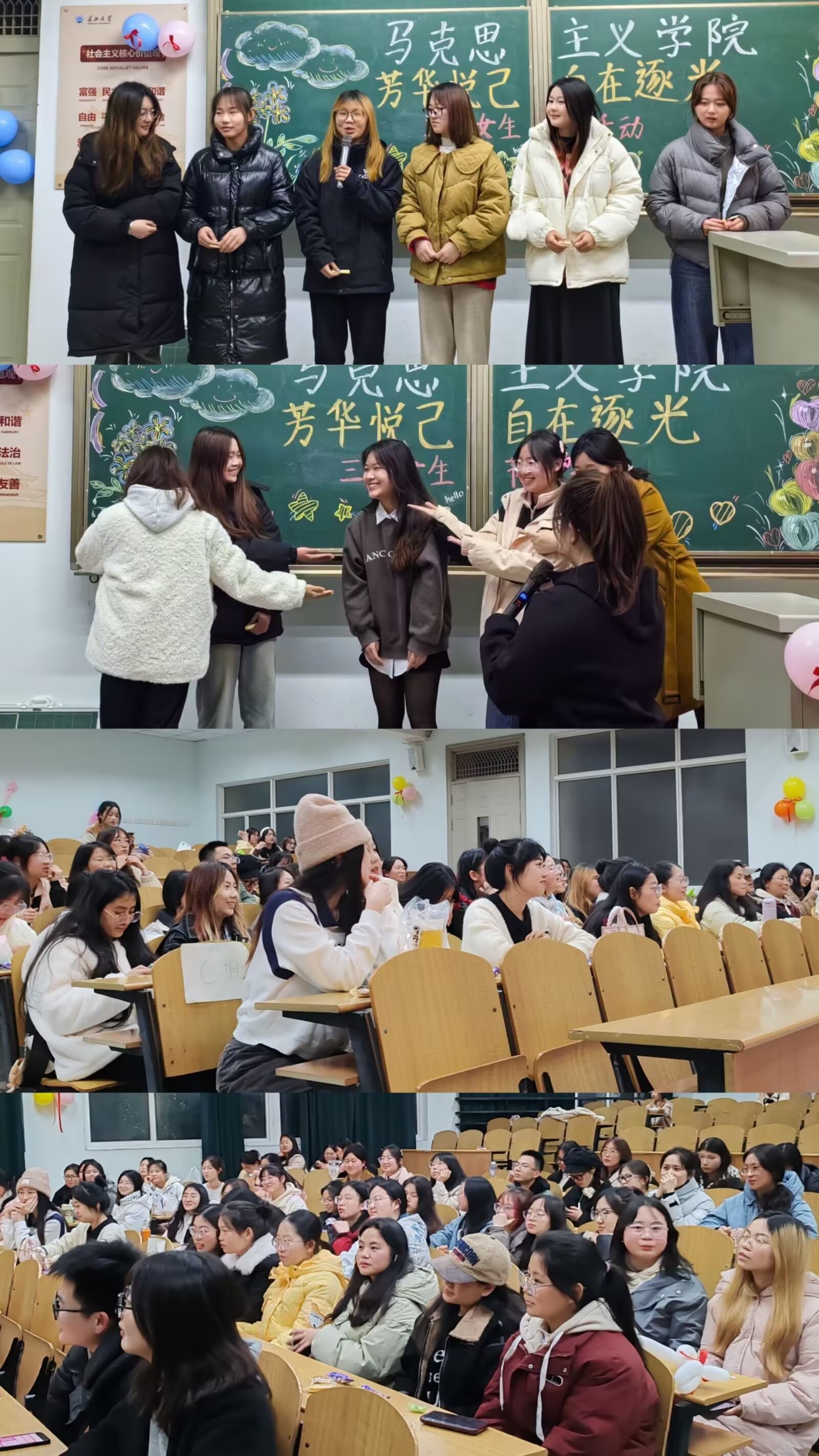 “三月春风拂花开,桃李年华正还是。愿你笑靥如花,眼中总有光芒!”伴随着主持人的祝福,学院为在场每一位女生送上了鲜花和精美的小礼品。同学们还互相交换了写有温暖祝福的明信片。“这次活动让我学到了很多关于女性的知识,也充分感受到了属于马院的爱和温暖”,活动结束后,不少同学发出感慨。