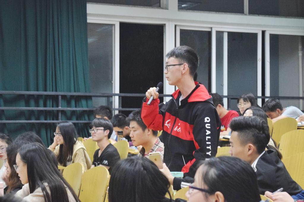 “我国在高速发展,怎样才能做到经济发展与环境保护相协调?”“在维持与国际同步发展的过程中,中国有限的生产是否能与世界同步?”“如何看待发达国家向发展中国家投放‘洋垃圾’?”……在互动提问环节,同学们踊跃的提出了自己的疑惑。