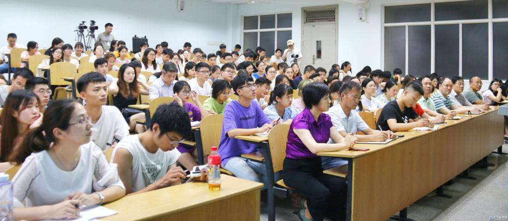 新闻网讯(学生记者 高欣/文 夏春秋/摄)611日晚6时许,13A203教室早已座无虚席,百余名学生齐聚于此,满怀期待地迎接本学期《生命长江》课程的最后一讲。“今天我们将在前九讲的基础上,用‘赋’的文体说长江。”晚7时,校党委书记朱业宏走上讲台,激情开讲《生命长江》第十讲:长江赋。
