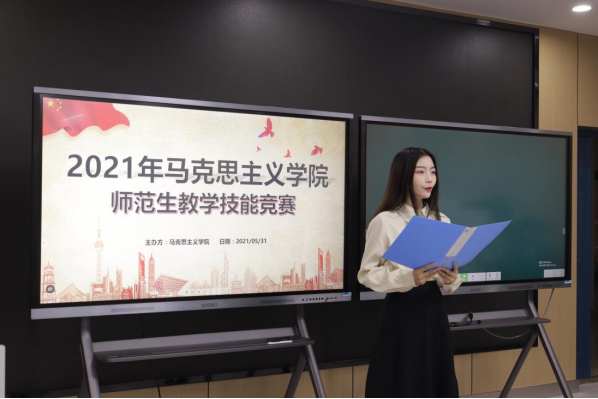 主持人宣布比赛正式开始之后,从几轮预赛中脱颖而出的10位参赛选手按照抽签顺序依次上场。1号参赛选手张晓燕发挥沉稳,通过设计小游戏环节,在轻松活跃的氛围中导入新课内容,为后面的参赛选手开了个好头。3号选手陈雅文将自己亲手制作的绒花带入课堂,围绕绒花的传承与创新,向同学们讲解了文化传承与创新相关知识;7号选手王瑾为了让学生更好地理解青春阶段的情绪,不仅自己绘制了一组情绪表情包的卡片,还让学生表演了一小段情景剧,吸引了学生注意力,使课堂氛围高涨,在授课过程中充分展示了自己作为未来教师的亲和力……紧张的竞赛在10号选手魏文婵带来的活跃有趣的课堂中告一段落。