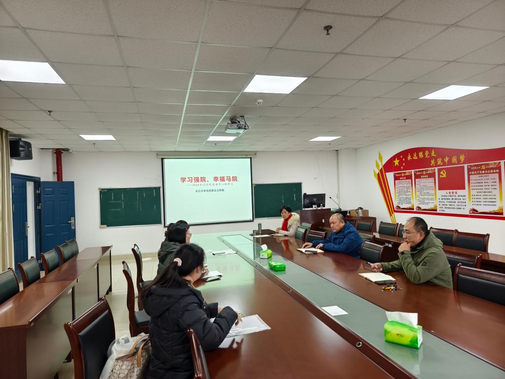 姜学勤在发言中指出,我们要进一步深入学习贯彻习近平总书记重要指示精神,始终坚持和加强党的全面领导,坚持铸魂育人、守正创新、系统谋划,在讲好讲深讲透关键课程、加强教育教学改革,加强教研投入、建强师资队伍,坚持夯基固本、开创学生培养新模式,发挥学科优势、扎实推进党的创新理论研究宣传阐释等方面持续聚焦发力,争创全省重点hjc黄金城官方网站,推进学院事业高质量发展。