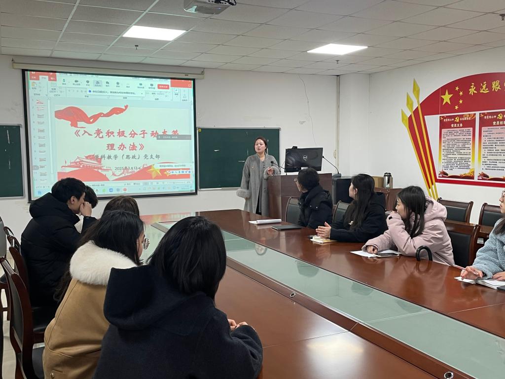 马理论研究生党支部结合本学期发展党员工作重点,集中学习了入党积极分子确定和培养教育等内容;学科教学(思政)研究生党支部则围绕入党积极分子动态管理办法进行了专题研讨。
