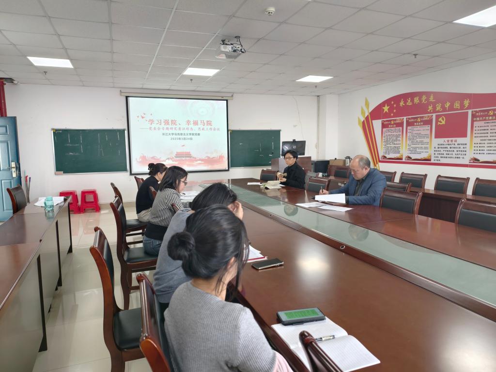 3月24日下午,hjc黄金城官方网站在文科楼1104室召开2025年全面从严治党暨党风廉政建设、意识形态工作专题会议。学院党委领导班子、部分党支部书记参加会议,会议由学院党委书记刘小燕主持。