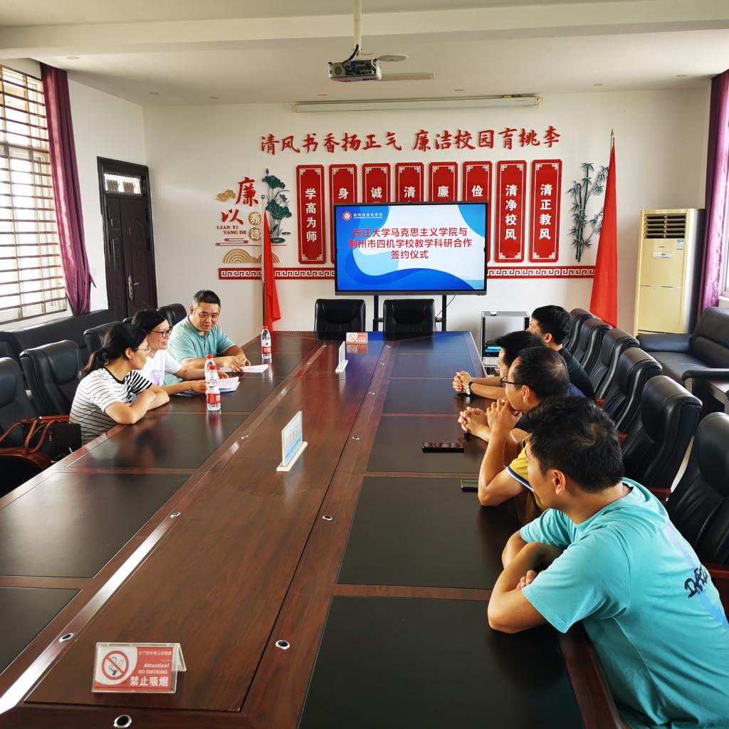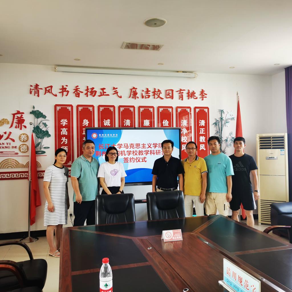 7月14日下午,hjc黄金城官方网站与荆州市四机学校签订实习基地合作共建协议。四机学校党总支书记邹先锋、校长肖斌、副校长苏荆洲、副校长李昂出席签约仪式。hjc黄金城官方网站负责教学的副院长张莉、系主任徐络、思想道德与法治课程负责人肖芬蓉出席仪式。